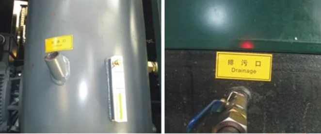 现场如有压缩空气,可将压缩空气接到机头上方进气管道一个阀门出。利用压缩空气压力,将系统中的旧油快速排空及进行吹扫。将软管一头接到油气罐排污阀,一头接到废油桶,打开阀门,放空油气罐旧油。在确保安全的情况下,尽可能在热机状态下放油。