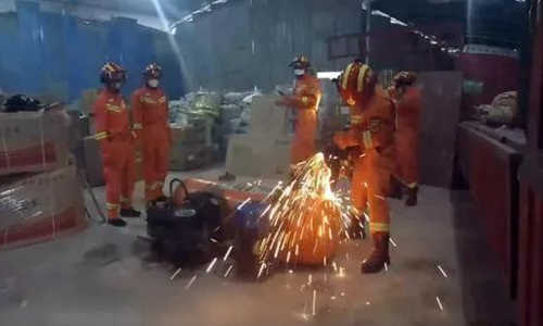 勐烈边境派出所民警在辖区物流公司开展检查时,发现一批运往内地的空气压缩机十分可疑。通过检查,民警发现在该批空气压缩机内藏匿有大量块状物品。随即通知当地消防救援部门携带专业设备前来对空气压缩机进行切割。随着空气压缩机被切开,民警当场查获冰毒93块,共计52.6公斤。