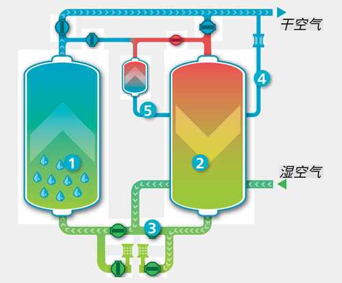 无热吸附式干燥机完全利用压缩空气作为脱附介质。