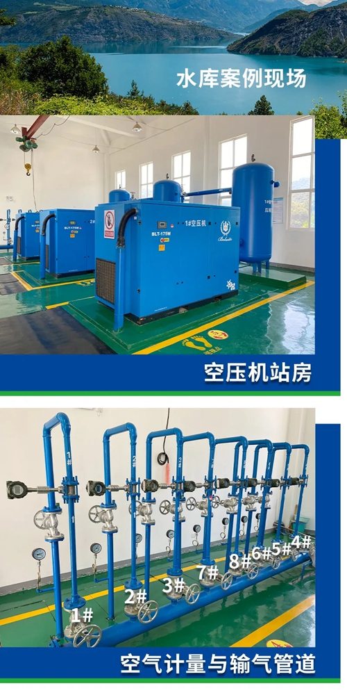本案例中,西安某水库是应用“扬水曝气”技术比较早的水库之一,得知水库用气需求后,博莱特通过多部门的合作,在客户现场实地勘测,深入学习和了解水库“扬水曝气”的用气要求。最终,博莱特提供的空压机解决方案脱颖而出,携手客户一同探索水资源可持续创新之道。