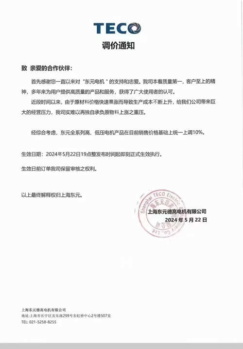 实在扛不住了!!一大批电机集体涨价!