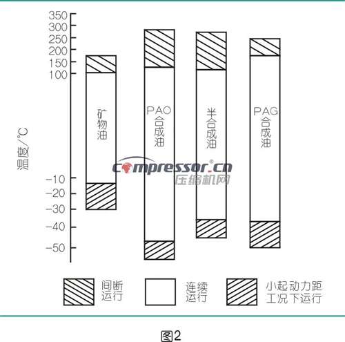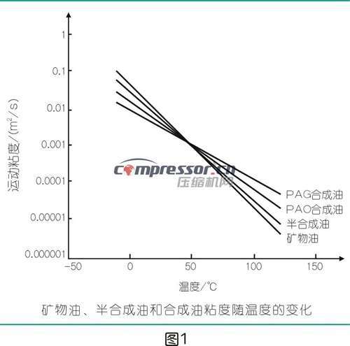 空气压缩机是一种将自由空气压缩成具有一定压力能的设备。在压缩过程中,空气分子间距缩小,产生热量,导致排气温度升高。排气温度对压缩机的效率和润滑油的寿命有重要影响。一般来说,排气温度越高,压缩机效率越低,润滑油寿命也越短。空气压缩机的排气温度极限通常在110℃以下,某些机型可能高达120℃,此时矿物油可能无法满足运行要求。润滑油特性详见图1、图2。