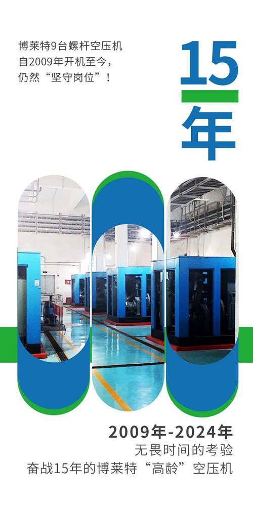 博莱特“15岁高龄”空压机是如何做到“不惧岁月沧桑,青春活力不减”?接下来让我们揭秘博莱特空压机的健康秘籍吧!