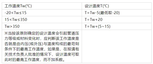 a.一般情况下为了操作上的方便,在此不妨也采用压力容器的做法,在相应工作温度的基础上增加一个裕度系数(除法兰和螺栓以外)作为元件的设计温度。一般情况下管道元件的设计温度确定