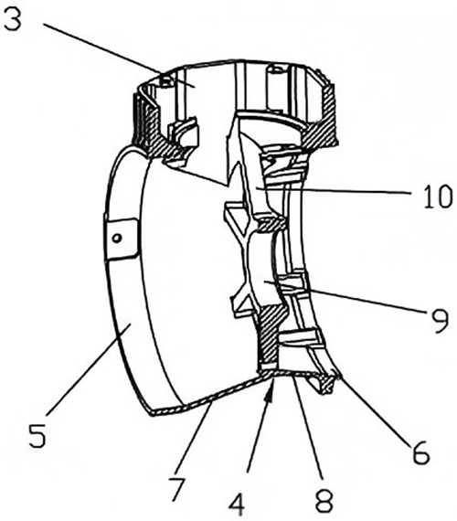 涉案专利权利要求1内容为:一种空压机箱体,包括主体部(2)和缸座部(3),主体部(2)呈圆筒状,缸座部(3)内设有空腔,主体部(2)内腔和缸座部(3)内腔相互连通,其特征是:主体部内端(6)和主体部外端(5)之间设置有缩颈部(4),缩颈部(4)内径小于主体部内端(6)内径和主体部外端(5)内径,主体部外端(5)和缩颈部(4)之间为内径逐渐缩小的缩径段(7),缩颈部(4)和主体部内端(6)之间为扩口段(8)。