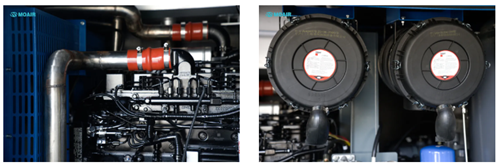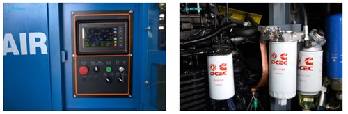 产品搭载牧风定制控制器,采用LCD液晶显示,提供多语言选择,控制器稳定性强,全面监控整机不同工况,实现“无人值守”,大幅降低停机风险;搭载牧风自研的ECU节能系统,有效降低能耗;同时,该产品的可开式车门设计,为日常维护保养工作保驾护航,移动机车篷及篷壳设计都具备了很强的降噪、吸音作用。