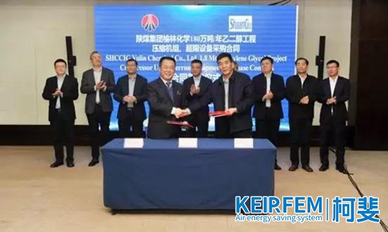 12月10日,陕煤集团榆林化学有限责任公司与陕西鼓风机(集团)有限公司签订“陕煤集团榆林化学180万吨/年乙二醇工程”压缩机组采购合同,共计20台套工艺气压缩机组。