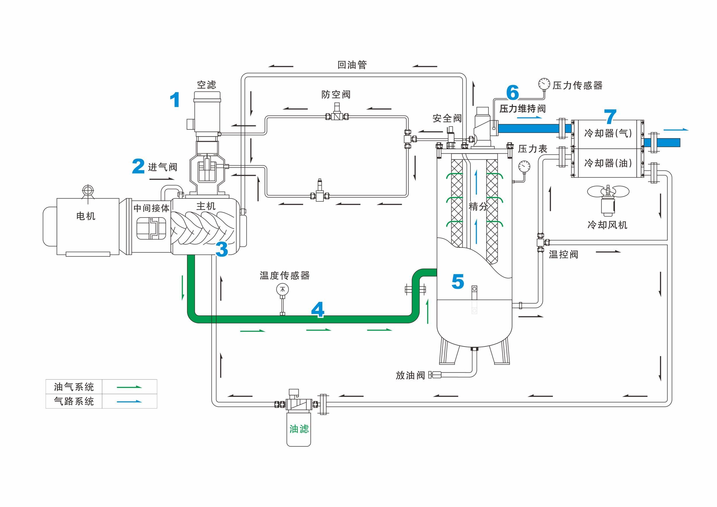 空压机与后处理设备的间距:冷干机、储气罐等后处理设备应与空压机保持1-1.5米的距离,确保气流畅通。