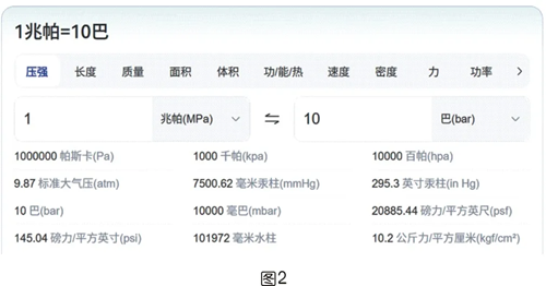 压力单位换算:如1MPa=10bar=145psi,1bar≈0.98kg/cm2(工程常用“公斤压”)。