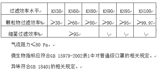 不同过滤效率水平对应的过滤效率指标见表: