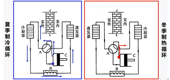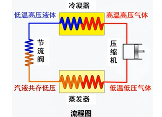 这样,被冷却物体便得到冷却,而制冷剂蒸气又被压缩机吸走,开始下一个循环,这样,制冷剂在系统中经过压缩、冷凝、膨胀(节流)、蒸发四个过程完成了一个循环,通过连续不断制冷循环,实现了制冷的目的。制冷系统在生活中也是很常见的,接下来小编以空调为例,讲述空调的制冷循环,以方便读者能更好地理解冷干机的制冷系统。