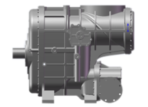 1、壳体的两侧设计成一种迷宫式流体散热结构,可以通过鼓风机系统的冷却油经由这种散热结构来冷却壳体。
