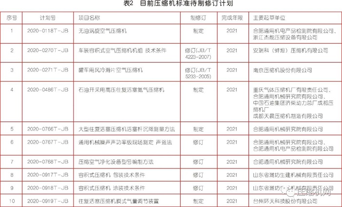 另外,今年至明年还有10项压缩机标准待制修订,清单见表2。