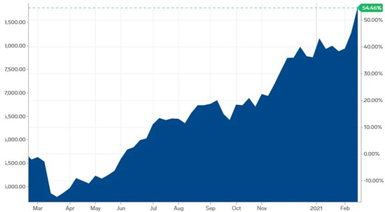 铜价过去一年已涨超50%。铜价的上涨标志着市场对于未来经济复苏的预期。上周,高盛发表研报称,铜市即将迎来十年来最大的供不应求的情况,并且在未来几个月出现稀缺风险的可能性极高。高盛特别指出,在农历新年后,中国投资者大量买入铜,导致需求暴增,但铜市供应却增长有限。