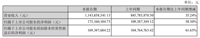 2021年半年度,鲍斯股份经营持续向好,各板块业务稳定增长。报告期内,公司实现营业收入114,385.85万元,同比增长35.24%;实现归属于上市公司股东的净利润17,316.01万元,同比增长58.30%。