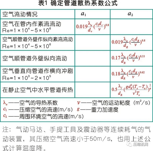 对于非热绝缘的金属管道,若不考虑传热面上的污染对散热的影响,在给确定管道长度上的压缩空气的温度降低: