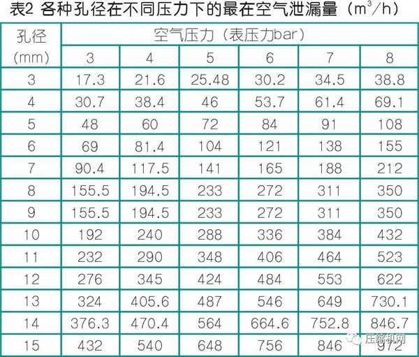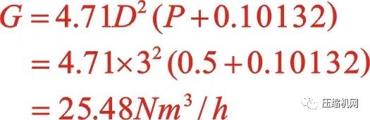 例:当孔径为3mm,管内空气的绝对压力为0.5MPa时,每小时的泄漏空气量为: