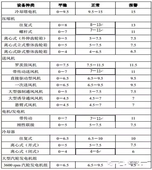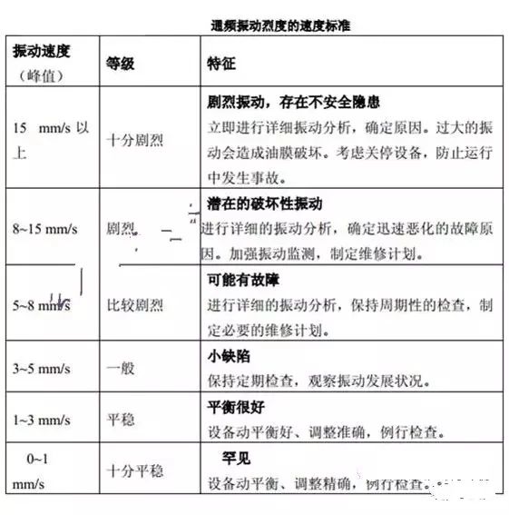 对于不上述范围内的设备,下表 “通频振动烈度的速度标准”可以提供相应的振动评价方法。