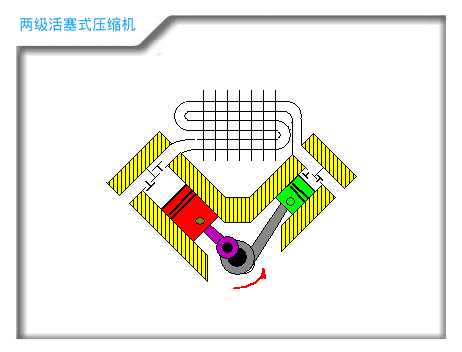 通过曲柄连杆机构将曲轴旋转运动转化为活塞往复运动,气缸一个工作循环,吸气、压缩、排气、膨胀!